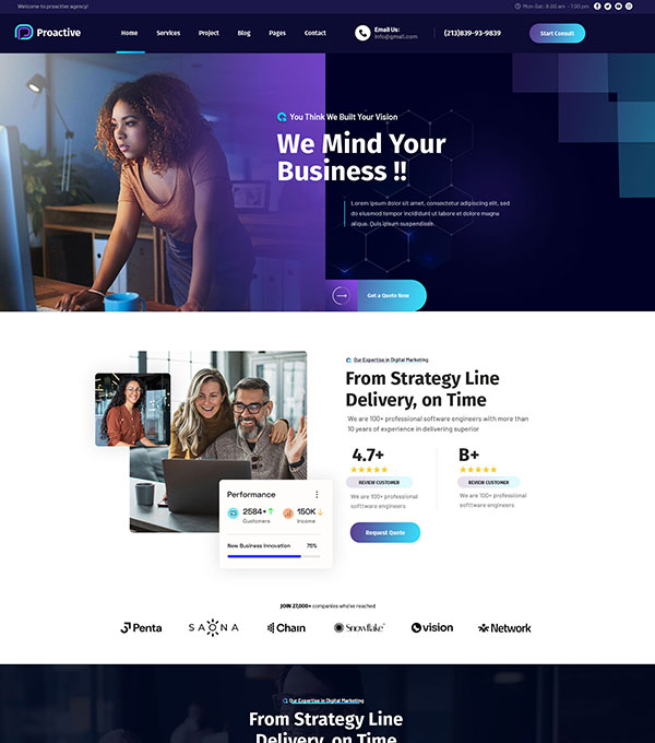 Proactive is a Digital Agency WordPress Theme for any agency, marketing agency, video, technology, creative agency.